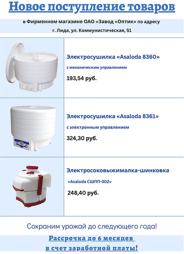 https://opticlida.by/wp-content/uploads/2024/10/sushilki_sokovyzhimalki.jpg 450600adminhttps://opticlida.by/wp-content/uploads/2023/03/belomo_logo.pngadmin2024-10-17 08:26:142024-10-22 08:58:24Новое поступление товара в наш фирменный магазин: электросушилки и соковыжималки