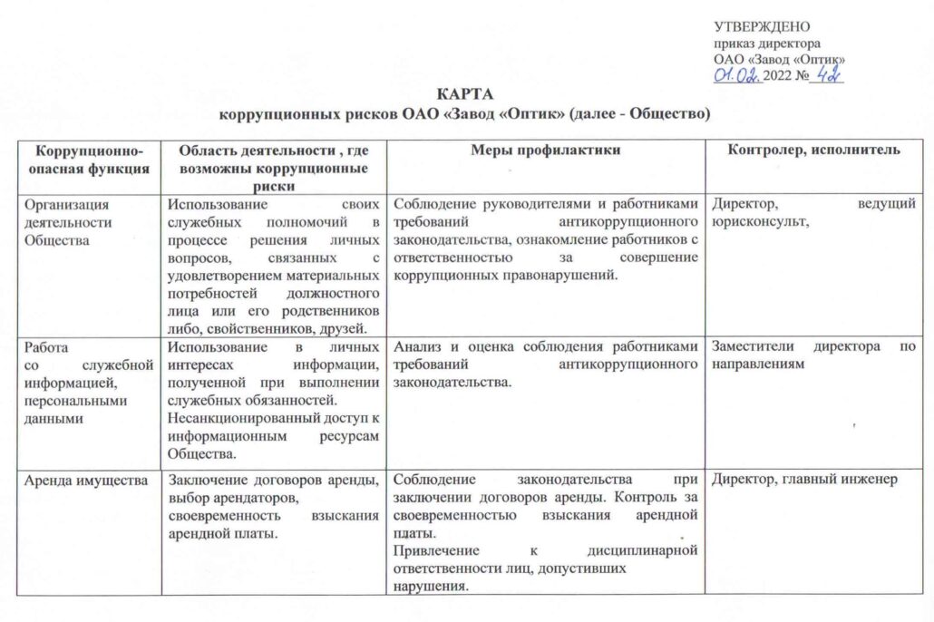 Карта коррупционных рисков