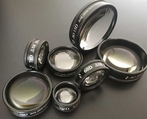 The lenses are designed for diagnostic purposes in ophthalmic practice. Ophthalmic lenses are used for visual stereoscopic study of eye ground and angle of anterior chamber.